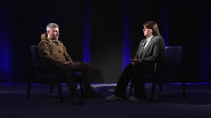 Роман Жовтюк і журналістка Суспільного Дана Савицька під час інтерв’ю. Суспільне Тернопіль