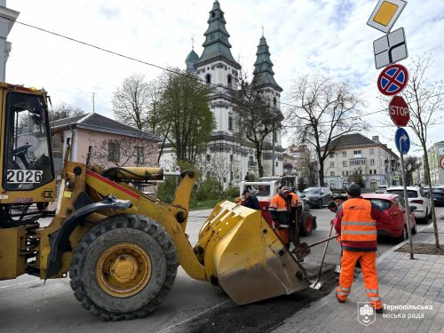 Поточний ремонт дорожнього покриття та оновлення дворів і тротуарів тривають у Тернополі.