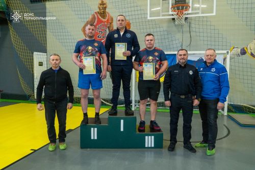 «Рятувальники взяли участь у чемпіонаті Тернопільської обласної організації ФСТ «Динамо» України з гирьового спорту. За підсумками змагань серед шести команд збірна Головного управління ДСНС України у Тернопільській області виборола друге загальнокомандне місце. Перемогу здобула команда ГУ НП у Тернопільській області, третє місце посіли представники Управління поліції охорони.
