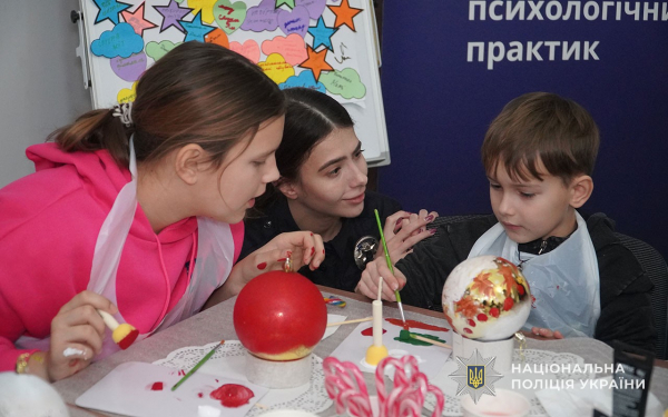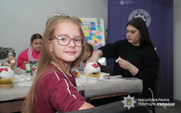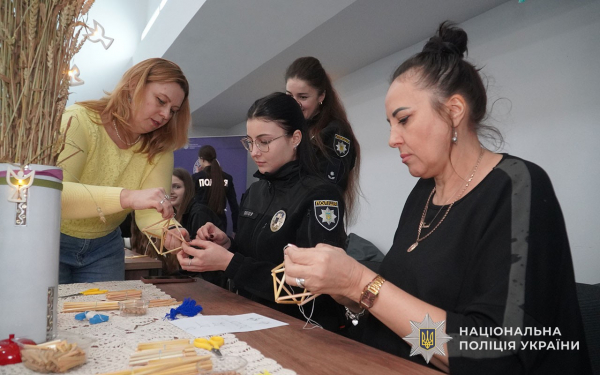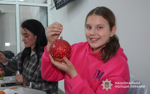 На захід зібралися діти, дружини та батьки поліцейських. Учасники спілкувалися, підтримували одне одного та долучилися до творчих майстер-класів – розмальовували новорічні кульки й виготовляли різдвяного павука.