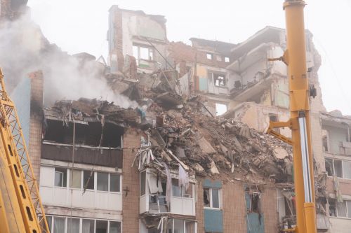 У Тернополі на вулиці Стуса демонтують будинок, який знищила російська ракета, забравши життя його мешканців.
