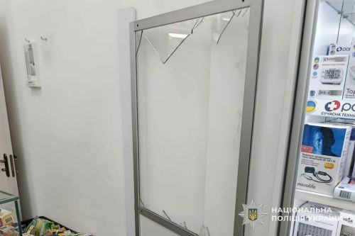 На місце події виїхали поліцейські, які припинили протиправні дії. Під час інциденту чоловік розбив скло у дверях аптеки. Сума завданих збитків становить близько 5 тисяч гривень.