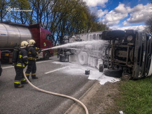 Внаслідок аварії перекинувся вантажний автомобіль. Бійці ДСНС вжили всіх необхідних заходів, щоб не допустити займання пального”, –зазначають у ДСНС.