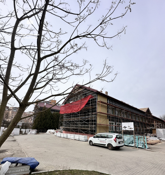 У навчально-виховному комплексі «Школа І-ІІІ ступенів — економічний ліцей №9 імені Іванни Блажкевич» тривають роботи з утеплення стін за технологією вентильованого фасаду та встановлення нової покрівлі.