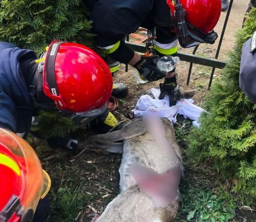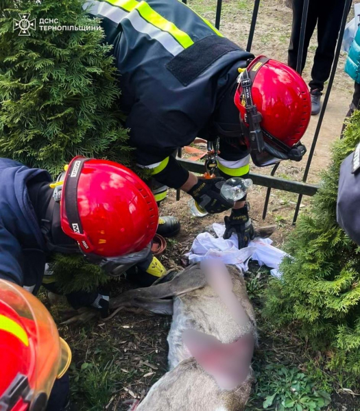 Інцидент стався на вулиці Київській. Рятувальників викликали після повідомлення, що косуля застрягла в металевій огорожі на прибудинковій території і не може самостійно вибратися.