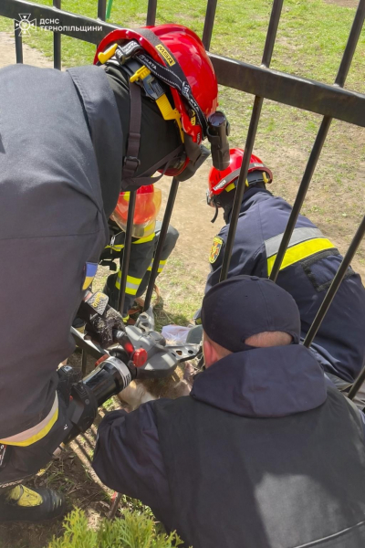 «Рятувальники за допомогою гідравлічного інструменту розтиснули металеві прути та вивільнили тварину, не завдавши їй додаткових ушкоджень», – повідомили у ДСНС.