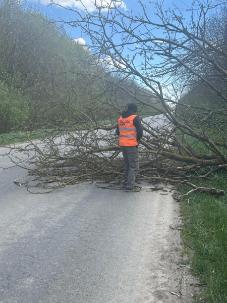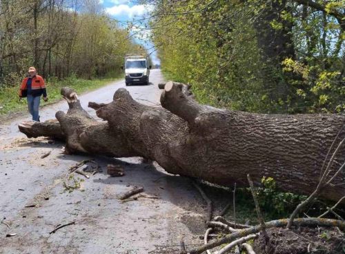 Сьогодні, 26 квітня, сильний вітер повалив дерева на дороги у Тернопільській області.