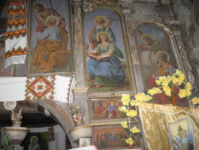 Давні ікони в дерев’яній церкві. Загір’я Зборівське