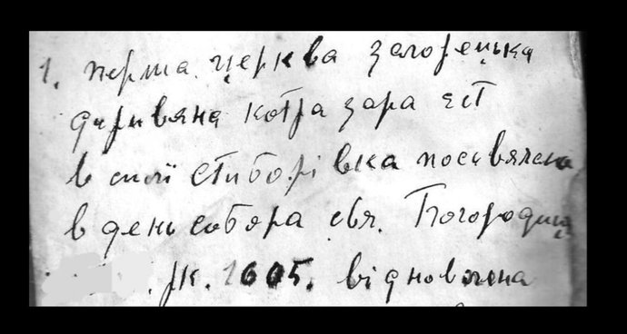 Копія згадки про побудову церкви. Загір’я Зборівське