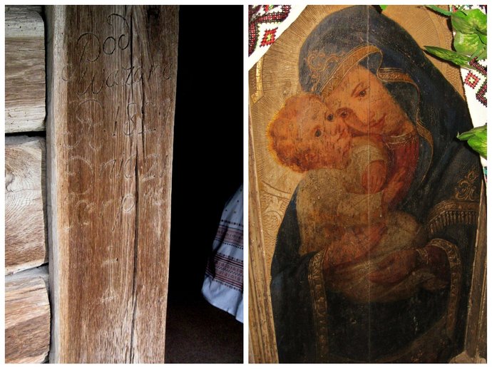 Запис на одвірку церкви та ікона Божої Матері. Загір’я Зборівське
