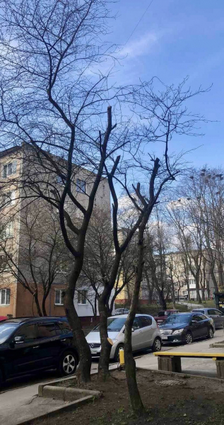 “ПП “Східний масив”, вам дров на зиму мало? На Данила Галицького, 16, обкарнали живі вишні під нуль. Одне дерево вже навряд чи оживе. Гілки забрав син працівниці ЖЕКу. Біля сусіднього під’їзду дерева не чіпали — це така “вибіркова” любов до природи? Хто за це відповість?, – пише користувачка Viktoriia Plavshak. – Замовила цю «обрізку» сусідка з 7-го поверху, яка сама працює в цьому ж ЖЕКу. Їй дерева під вікнами першого поверху заважали. Деревину вона закрила у кладовій, а за день – два приїхав її син і забрав усю деревину собі. Чисто сімейний підряд: самі зрізали — самі на дрова вивезли”.
