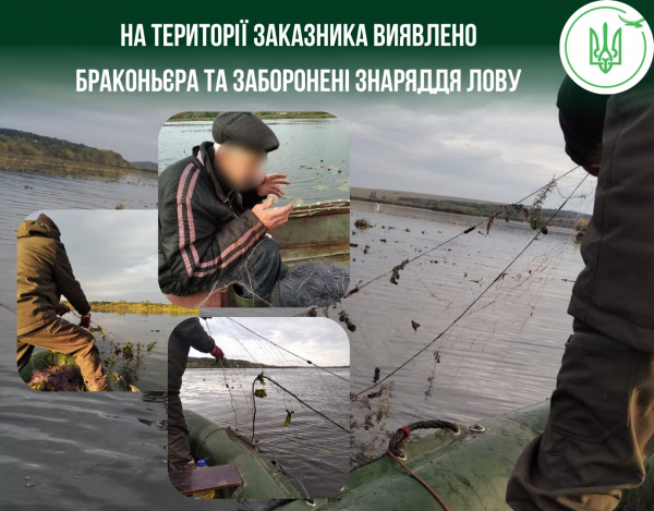 На території природно-заповідного фонду області під час рейдової перевірки виявили браконьєра та заборонені знаряддя лову.