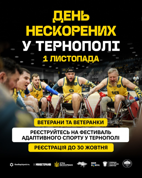 Ветеранів та їхніх близьких запрошують приєднатися до «Дня Нескорених» у Тернополі та відчути силу спорту, яка об’єднує.