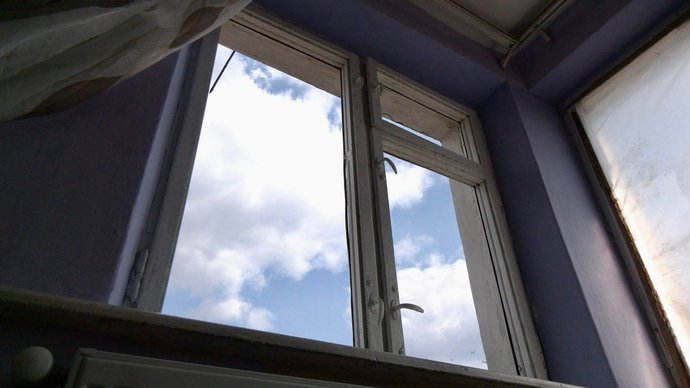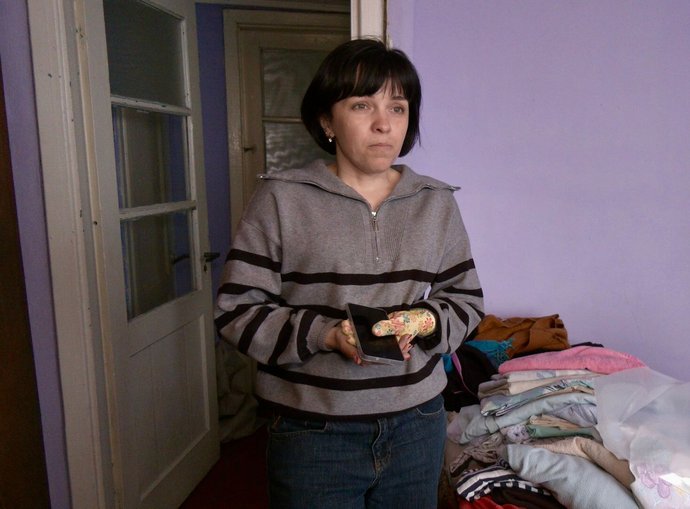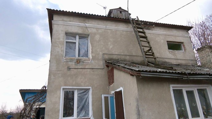 Плівку для п’ятьох вікон дали благодійники, каже Людмила. Комісія міської ради обстежила будинок. Жінка показала перший поверх, де пошкоджені стіни і стеля.