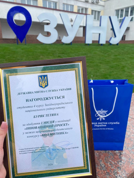 Студентки факультету фінансів та обліку Західноукраїнського національного університету здобули призові місця за результатами конкурсу «Код митника», який проводиться Державною митною службою України в межах реалізації HR-стратегії на 2025–2030 рр.