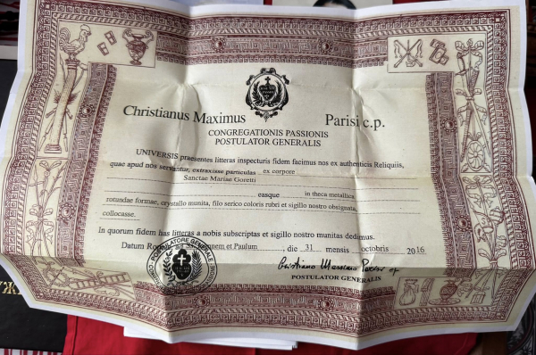 Священник з Монастириськ Ростислав Смірнов повідомив, що отримав у дар мощі святих Джеми Ґалгані та Марії Ґоретті.