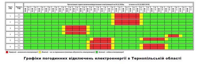 Графік відключення світла на Тернопільщині 4 грудня. Суспільне Тернопіль
