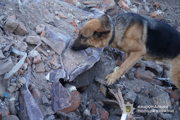 До робіт залучені службові собаки, зокрема вівчарка Кері, яка допомагає виявляти людські рештки та особисті речі загиблих. За останні дні знайдено кілька кісткових фрагментів, частина з яких уже направлена на генетичні дослідження.