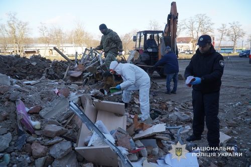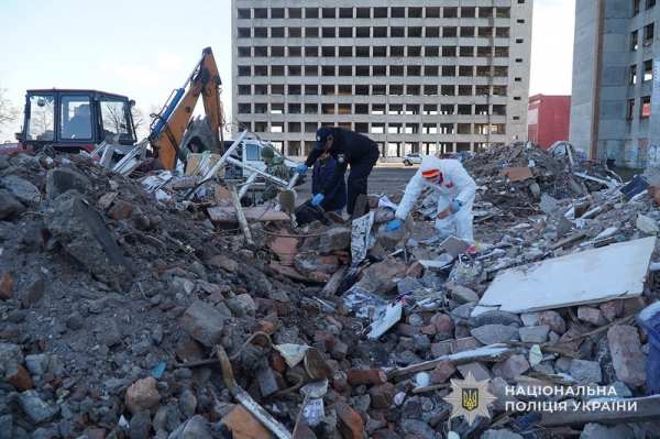 Як повідомили у поліції, на спеціальний майданчик за межами міста звезли сотні тонн уламків із будинків на вулицях Стуса та 15 Квітня. Слідчі, криміналісти та кінологи вручну переглядають кожен шар завалів, а всі знайдені фрагменти ретельно документуються та передаються на експертизу для ідентифікації.