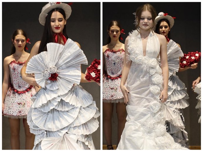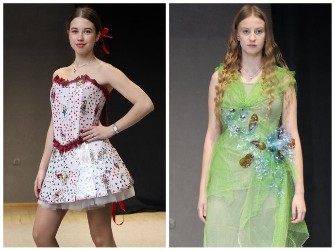 "Студенти вдало проявили себе в апсайклінгу. Це творче перетворення відходів у предмети мистецтва, аксесуари, одяг. Також це й екологічна тематика, збереження довкілля та переробка. Всі моделі наших студентів виглядали незвично, але органічно. Це були сукні з кухонних ганчірок, пакетів для сміття, старих бухгалтерських книг, зі шматків тканини, гральних карт, з використаних пазлів, бо буває, що 2-3 пазли загубилися, а решту ми викидаємо у смітник", — розповіла Марія Маркович.