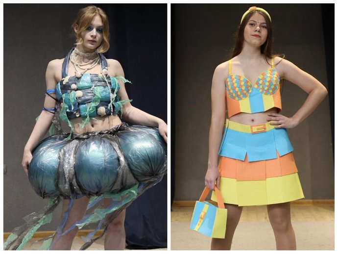 Студентки демонструють сукні з побутових відходів. Олександр Петлюк