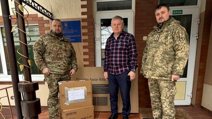 У лютому передали комплект обладнання: інвертор з акумулятором, сонячні панелі, а також електрообігрівач.