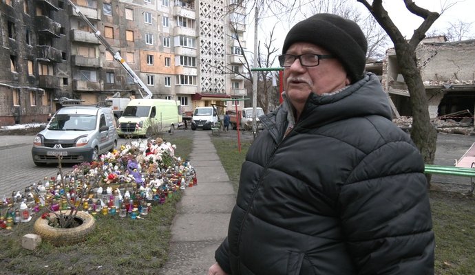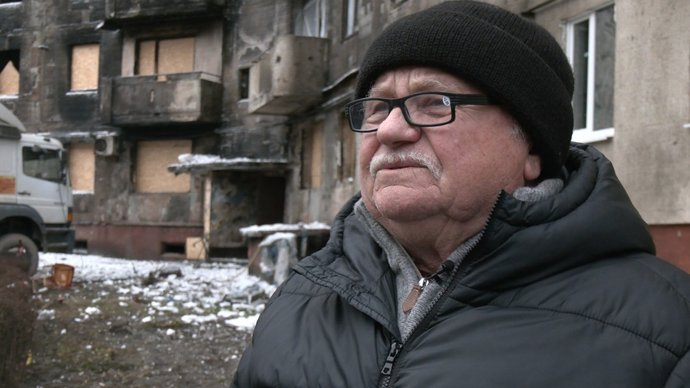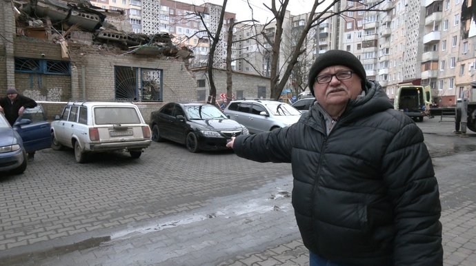 "Тепер ми прибираємо у помешканні. Як і 20 днів тому, коли я вийшов з лікарні, так і до сьогодні, кожного дня ми виносимо мішки сміття. Поставили двері на місце, які лежали вирвані. Скла немає, замки вирвані, деяке скло потріскало або й зовсім дверей нема. Я стараюся зараз зробити все, щоб тут вже можна було жити".