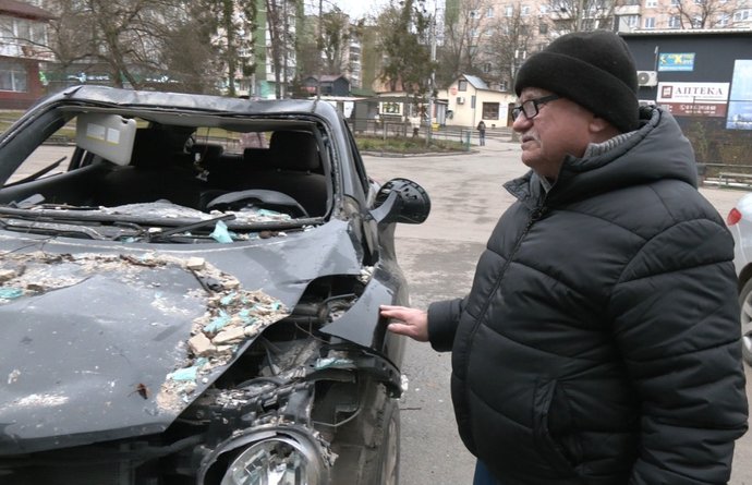 За словами Романа, під час прильоту біля під’їзду стояла його автівка. Зараз машина припаркована поруч із лікувальним закладом, куди вони з дружиною звернулися за допомогою.