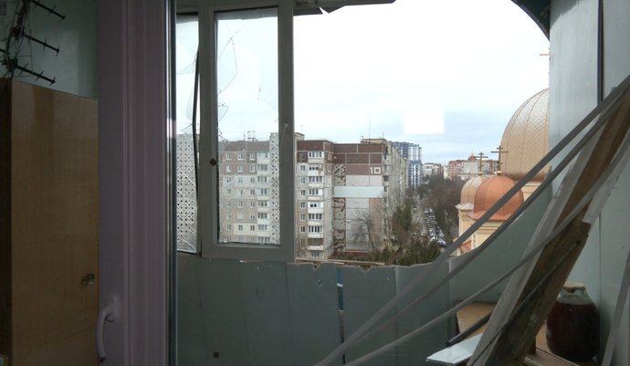 "Треба повністю зробити ремонт: вагонка, дерево, зашпаклювати, зробити житлову кімнату, такою, якою вона була. Вікна вилетіли під дією вибухової хвилі, і двері, і лоджія, через всю квартиру пішла хвиля аж до іншої сторони помешкання, настільки сильний був вибух. Двері з одвірками вилетіли і лежали у коридорі. З іншої сторони квартири, де з вікна видно церкву, також немає навіть плінтусів".