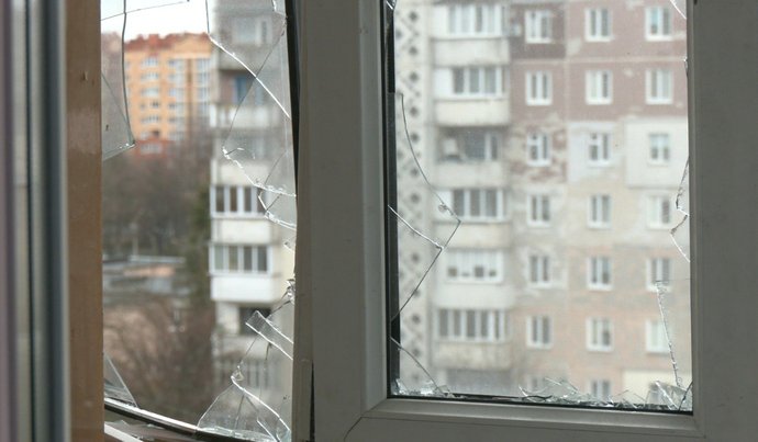 Вибите вибухом вікно у квартирі Романа Князевича. Суспільне Тернопіль
