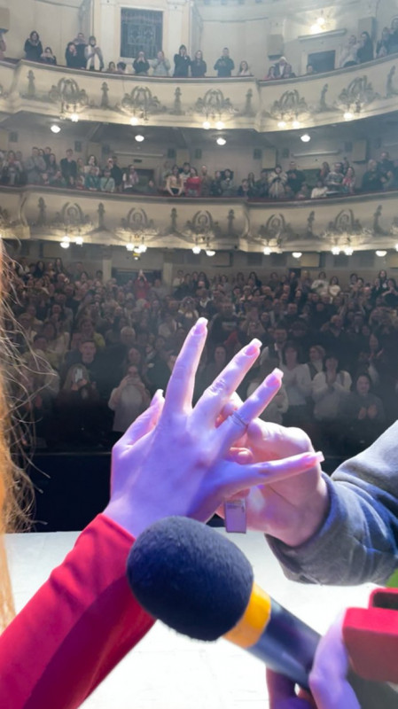 Тернополянин Павло Нікітюк 8 січня освідчився журналістці Віті Поляні на сцені драматичного театру. Хлопець вийшов з квітами та обручкою, аби зробити дівчині пропозицію. Йому допомагали актори драмтеатру. Про свої емоції Віта, яка раніше працювала на Суспільному, 9 січня розповіла редакції.