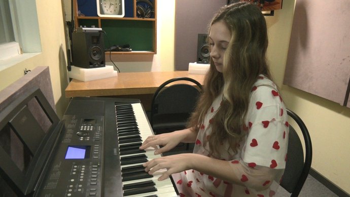 Ангеліна Глогусь грає на синтезаторі. Суспільне Тернопіль