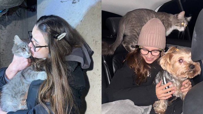 Батькам Ірини — Лілії та Михайлу Богуславському — вдалося врятуватися з палаючої багатоповерхівки, чоловік зараз у лікарні з численними травмами. Окрім кішки, у сімʼї є також песик — йому наклали шви, і він одужує.