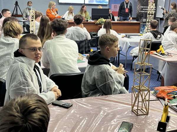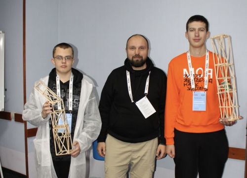 “У хакатоні взяли участь 44 учасники з 11 регіонів України, які працювали в командах над темою «Моделювання прототипів інженерних конструкцій». Із всіх учасників шляхом випадкового вибору було сформовано 9 команд. Кожна з яких мала один із трьох типів завдання – «Конструкція моста», «Конструкція висотної будівлі», «Конструкція сейсмостійкої будівлі». Фінальним етапом стала презентація проєктів командами перед членами журі та випробування конструкцій відповідним навантаженням до руйнування. Незважаючи на те, що з таким типом завдань конкурсанти зустрілись вперше, повністю налагоджували командну співпрацю, розподіл ролей у проекті, всі завдання були виконані. І при тестуваннях здавалось, що не витримають випробувальні стенди, а конструкції не руйнувались. Учнями було запропоновано цікаві технічні рішення. Зокрема команда під керівництвом Козовського Олександра, єдина використала активну систему гасіння коливань сипучими матеріалами. А команда в якій був Бабухівський Руслан, розробила каскадну конструкція від найбільшої до найменшої, тим самим зміщуючи центр мас якомога нижче”, – йдеться у дописі малої академії наук.