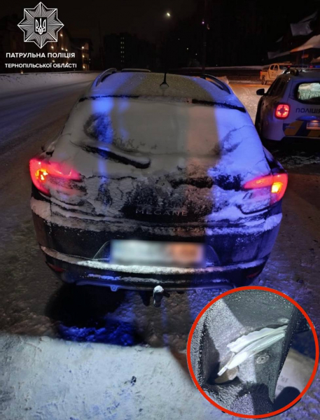 «Спілкуючись з водієм інспектори виявили у нього ознаки наркотичного сп’яніння. Від проходження огляду на стан сп’яніння чоловік відмовився. Під час проведення поверхневої перевірки патрульні виявили сліп-пакет із кристалічною речовиною, ймовірно, наркотичного походження», – зазначили у патрульній поліції Тернопільської області.