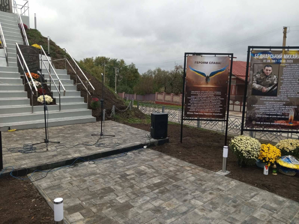 Пам’ятне місце спорудили у 1992 році, а тепер його оновили за спонсорської підтримки ТОВ «Калина Фармінг». Тут облаштували площадку, сходи та поручні, а також встановили меморіальний знак загиблому військовослужбовцю Михайлові Беднарському – уродженцю села й колишньому учневі місцевої школи.
