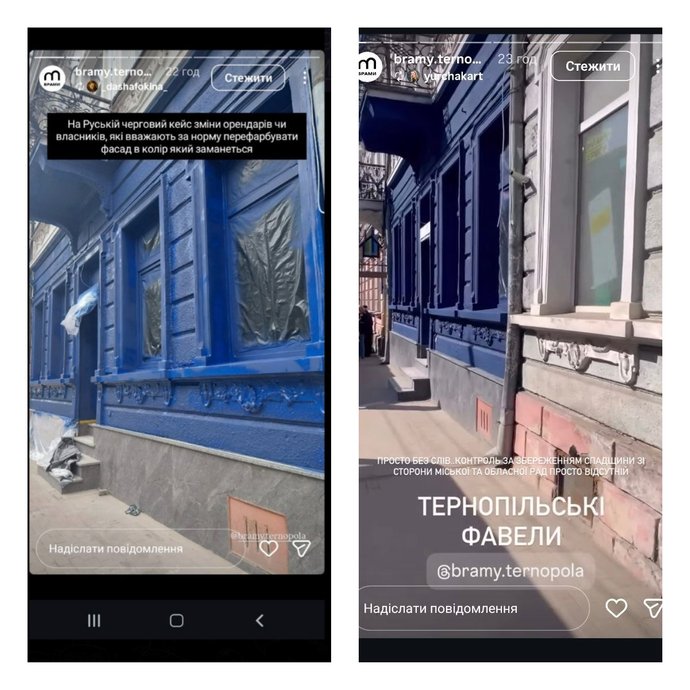 Дописи в сторіс ГО “Брами Тернополя”. Скрин зі сторінки “Брами Тернополя” в інстаграмі