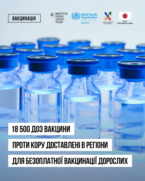 «Міністерство охорони здоров’я України отримало вакцину у співпраці з Всесвітньою організацією охорони здоров’я за підтримки Фонду “Азія — Європа” (ASEF) та розподілило її між усіма областями. Вона призначена, зокрема, для оперативного реагування на можливі спалахи кору», – повідомили у міністерстві охорони здоров’я України.