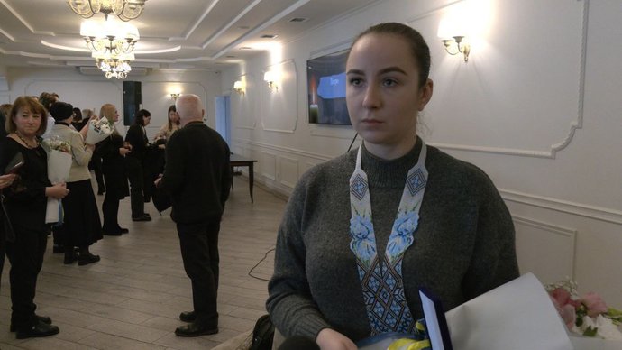 "Комбатантським хрестом" нагородили військовослужбовця Антона Білостоцького. Відзнаку отримала його дружина Світлана: