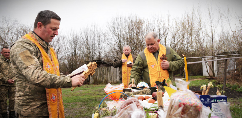 Священники освячують великодні страви бійців. 105 бригада тероборони ЗСУ
