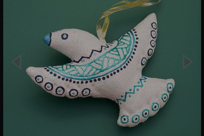 Білу жар-птицю на фоні зірки виготовили вручну. Власниця етномайстерні Вікторія Колодій підтвердила кореспондентам Суспільного, що іграшка на верхівці ялинки в Лондоні — з їхньої колекції.