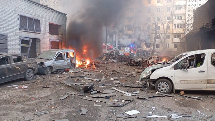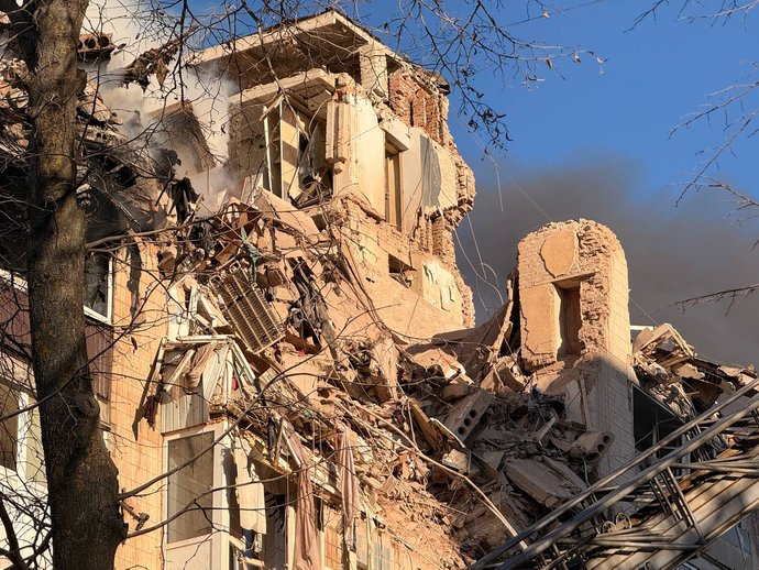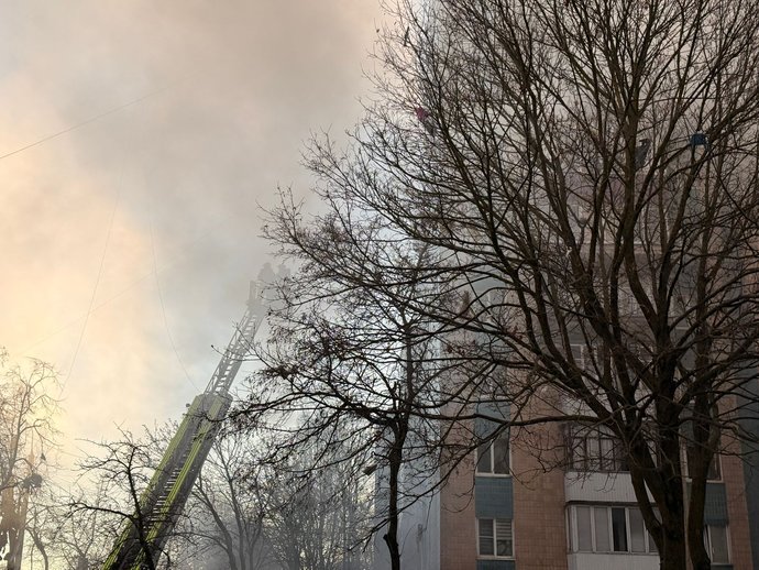 За словами поліцейських, влучання в багатоповерхівку на вулиці Стуса, 8 було між шостим та восьмим поверхом.