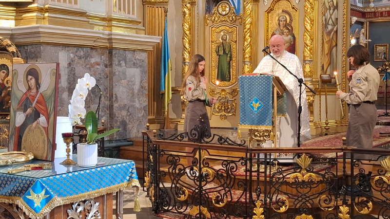 СУМівці принесли в храм ікону святого архистратига Михаїла, яку освятили в Києві під час святкування століття організації. Цей святий вважається покровителем СУМу.