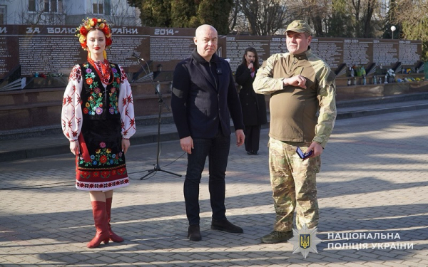 Під час урочистостей відзначили військовослужбовців-добровольців, які є прикладом мужності, стійкості та самопожертви. Серед нагороджених є й поліцейські Тернопільщини. Почесні грамоти та цінні подарунки від Тернопільської обласної ради отримали Михайло Білецький, Віталій Цап, Юрій Ковальчук, Ярослав Тарківський, Віктор Батуленко та Олег Ратушняк. Пам’ятні відзнаки Тернопільської міської ради вручили Руслану Вишневському, Олександру Кишкану, Юрію Антонюку, Сергію Дробатюку та Василю Кишкану.