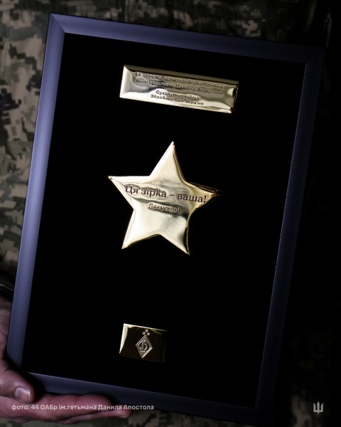 Військовослужбовці 44 окремої артилерійської бригади імені гетьмана Данила Апостола отримали символічну відзнаку — золоту зірку від футбольного клубу «Динамо» Київ.