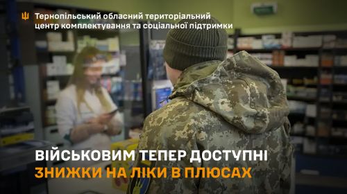 “Скористатися можна в мережах: Аптека Доброго Дня та 1 Соціальній Аптеці. Знаходьте найближчу аптеку в Армія+. Виберіть пропозицію та перейдіть у вкладку «Додатково». А ще можна прокласти маршрут в навігаторі. Також можете поділитися знижками з рідними: генеруйте код, тисніть «Поділитися» та надсилайте у месенджері. Сервіс Плюси розробляє та підтримує Центр Масштабування Технологічних Рішень”, – йдеться у дописі ТЦК та СП.