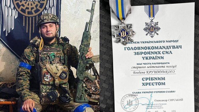 "З гордістю повідомляємо, що наш земляк, старший лейтенант поліції Богдан Крушинський на позивний "Еней", нагороджений "Срібним хрестом" Головнокомандувача ЗСУ! Богдан служить у полку "Цунамі" бригади "Лють" на посаді сапера, літає разом з побратимами на великих гексакоптерах і завдає ворогу нищівних ударів", — поінформували на сторінці міськради в соцмережі.