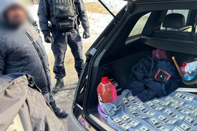 Оперативники управління стратегічних розслідувань в Тернопільський області, слідчі слідчого управління ГУНП в Тернопільській області за силової підтримки бійців роти поліції особливого призначення затримали чоловіків 20 лютого під час отримання понад 3 тисяч доларів.