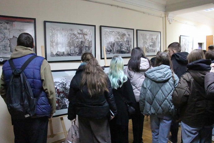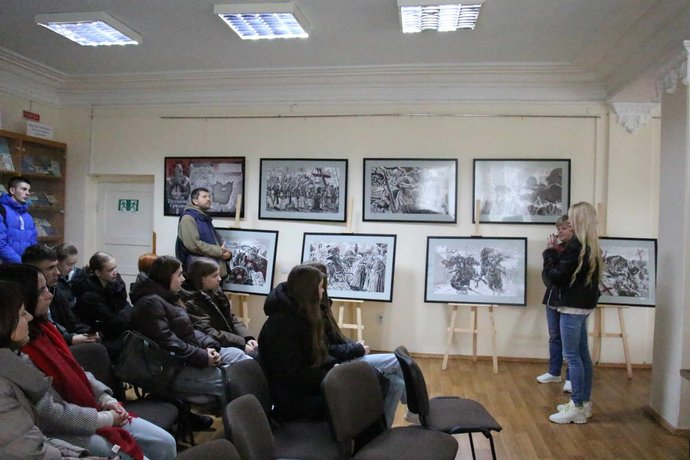 Відвідувачі оглядають ілюстрації. Тернопільська обласна рада