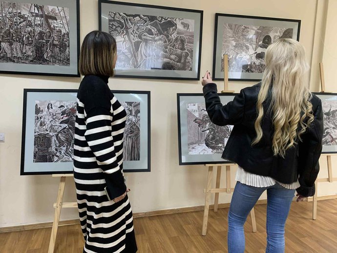У читальному залі Тернопільської обласної наукової бібліотеки розгорнули виставку ілюстрацій Олега Кіналя до поеми Торквато Тассо "Визволення Єрусалиму".